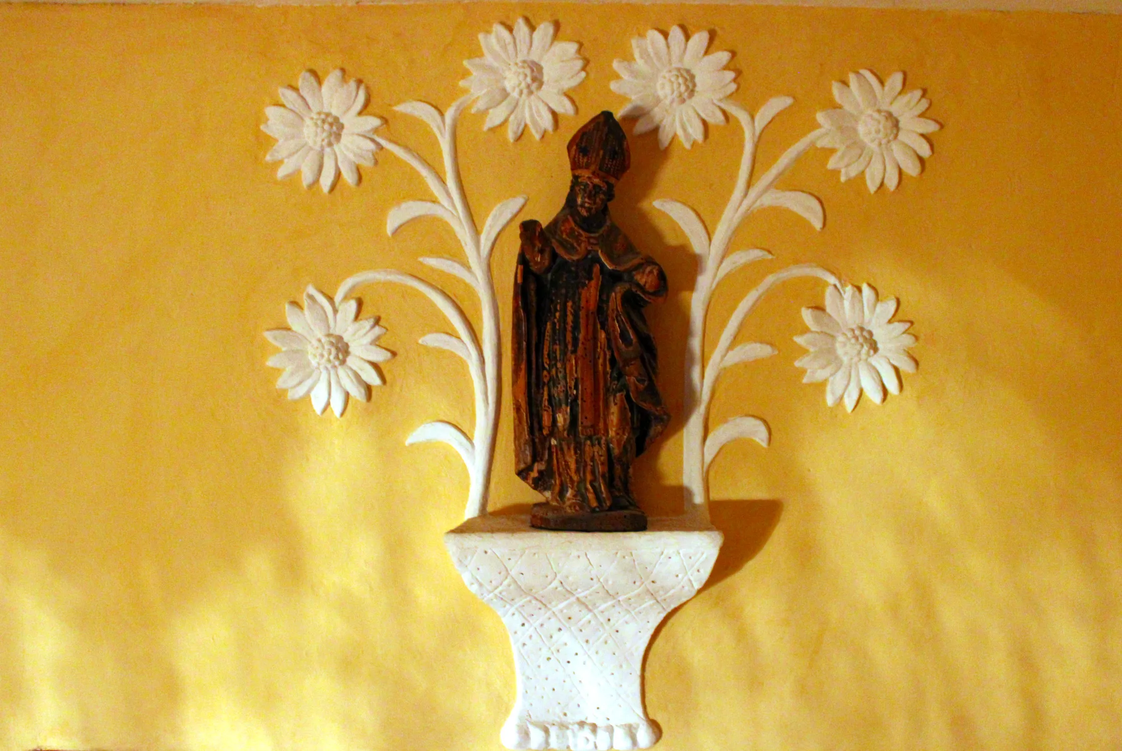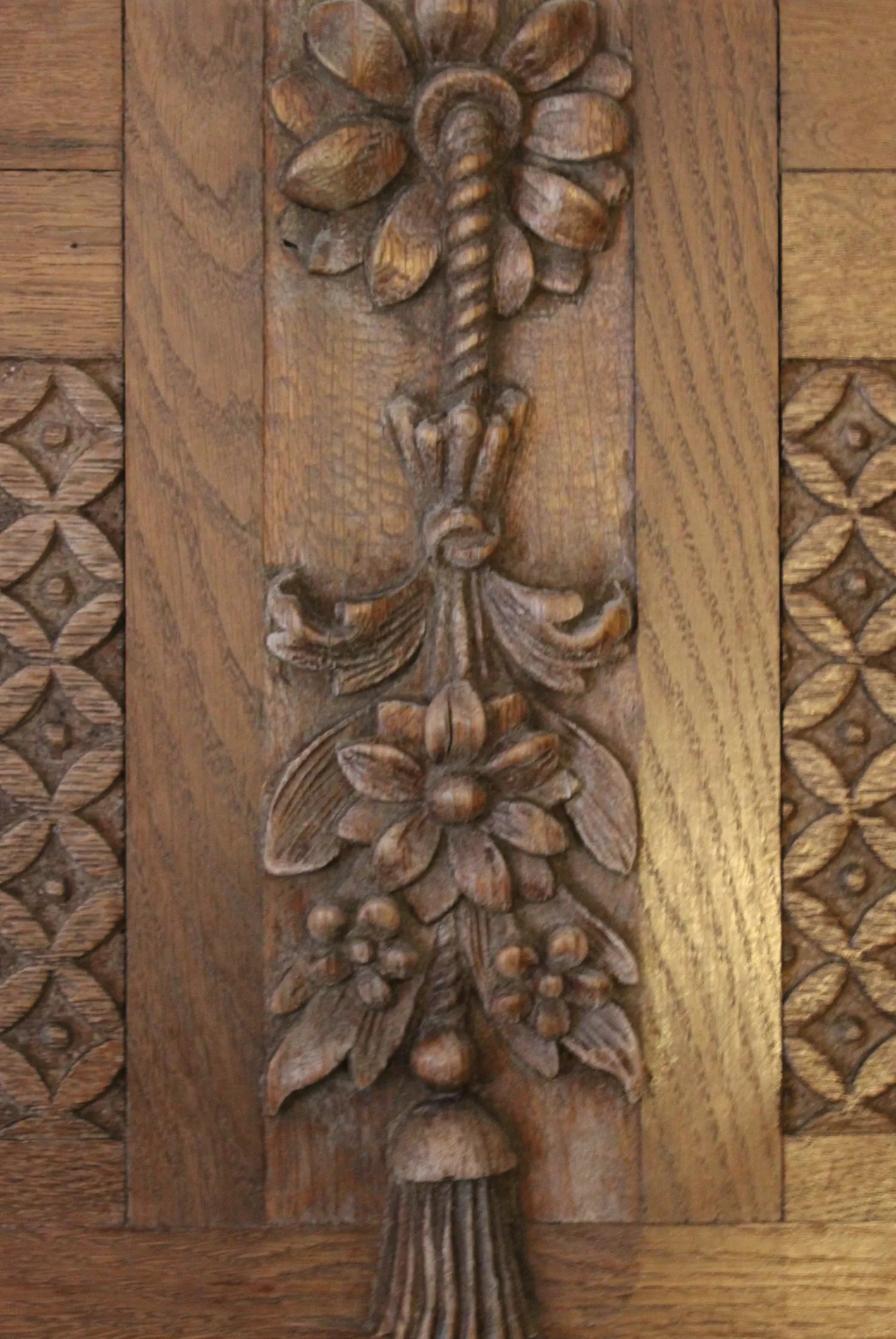 Dans la belle salle de la Blanche Maison, la vaste cheminée de bois peinte en faux-marbre est surmontée d’un trumeau stuqué. On y observe un décor d’inspiration Louis XIV surmonté d’oiseaux de facture naïve avec leurs yeux formés d’un éclat de charbon de bois. En Ardenne, de tels décors étaient présents dans les logis cossus tels que les maisons seigneuriales et bourgeoises. Malheureusement, leur fragilité a souvent entraîné leur disparition.