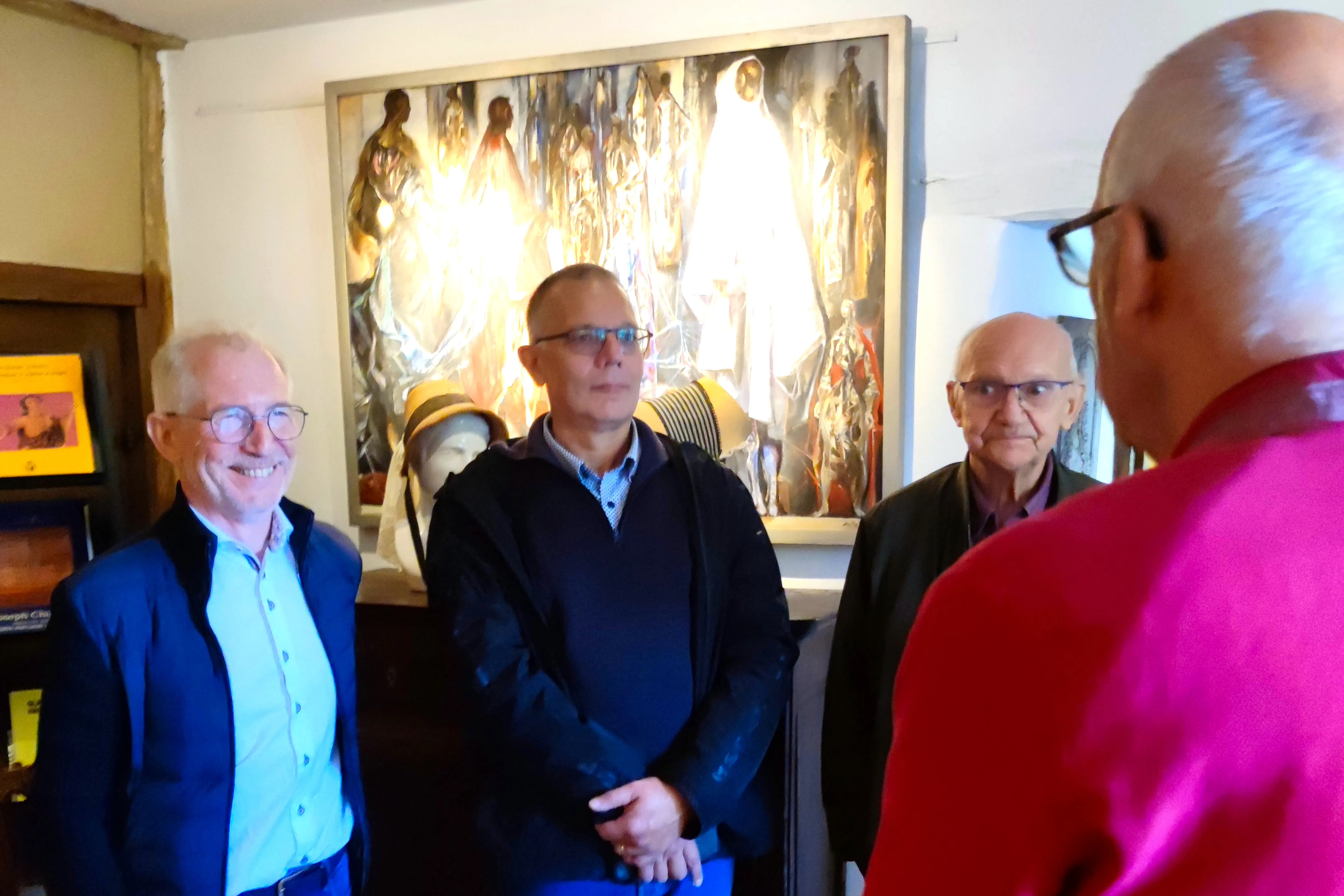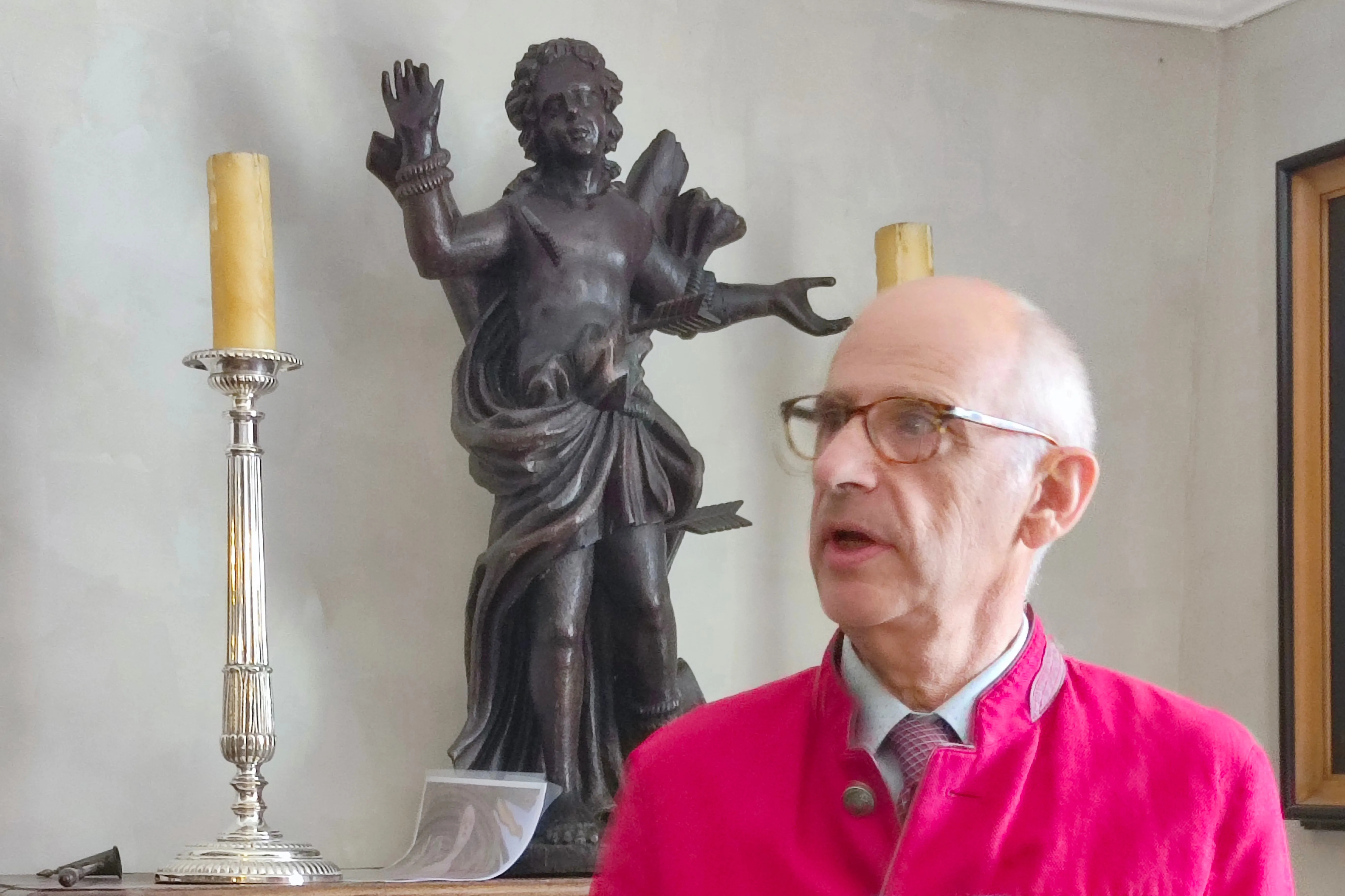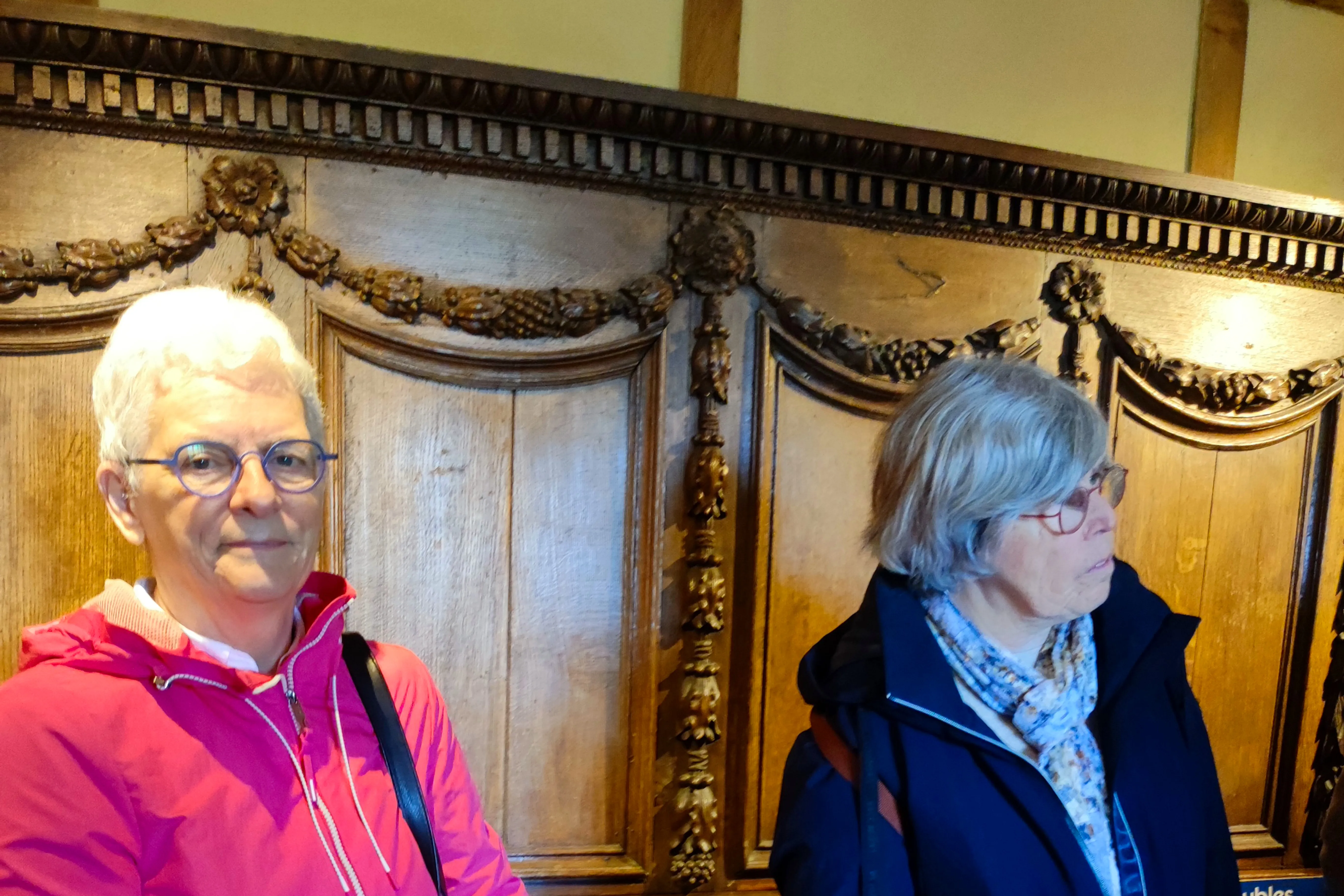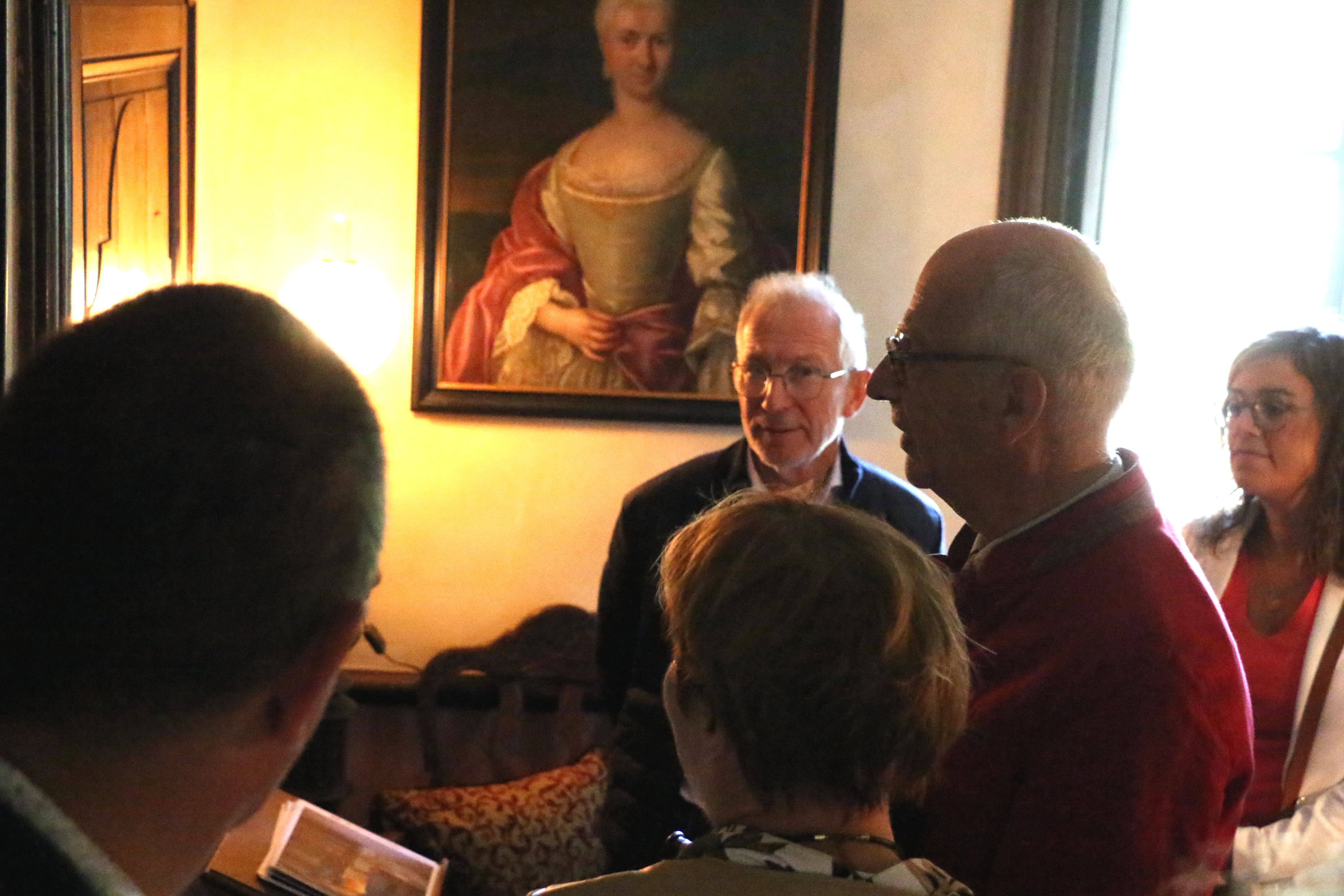 Cette cérémonie a été suivie de la visite des lieux, ouverts pour la première fois au public. L’assistance a ainsi découvert la cuisine avec ses murs chaulés en bleu outremer, une teinte traditionnelle car réputée chasser les mouches dans les croyances populaires. La visite s’est poursuivie dans la chambre derrière le feu, chaulée pour sa part en ocre jaune, teinte qui fait ressortir le délicat bouquet en stuc miraculeusement sauvé lors de la restauration. Il a été également question de stuc dans la belle salle avec le trumeau de la cheminée, lui aussi patiemment restauré : huit couches de peinture recouvraient les motifs décoratifs rarissimes qui font toute l’élégance de cette salle d’apparat. La visite du rez-de-chaussée s’est achevée dans la salle Saint-Hubert où ont été présentés les anciens menuisiers ardennais.
