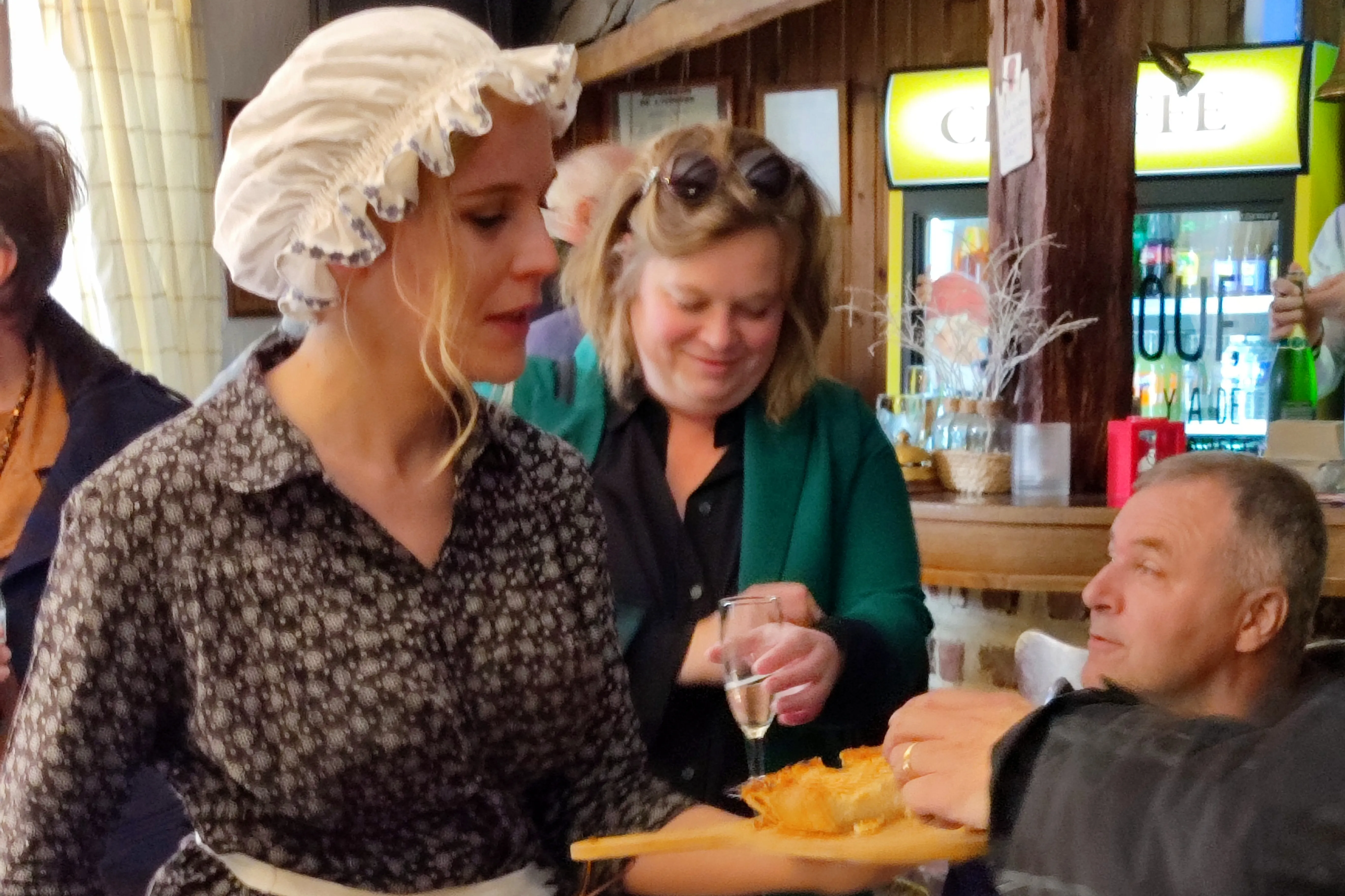 Dès leur arrivé à la taverne, les invités étaient accueillis par des éclats de rire. Alexandra, la patronne des lieux, sa fille Jennifer et leur amie Myriam ont immédiatement mis tout le monde à l’aise. Les flûtes et les quiches ardennaises ont rapidement été servies afin d’entamer les festivités.